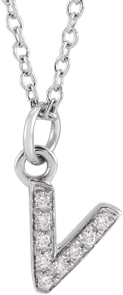14K White .03 CTW Natural Diamond Petite Initial V 16 to 18 inch Necklace Ref 18053987