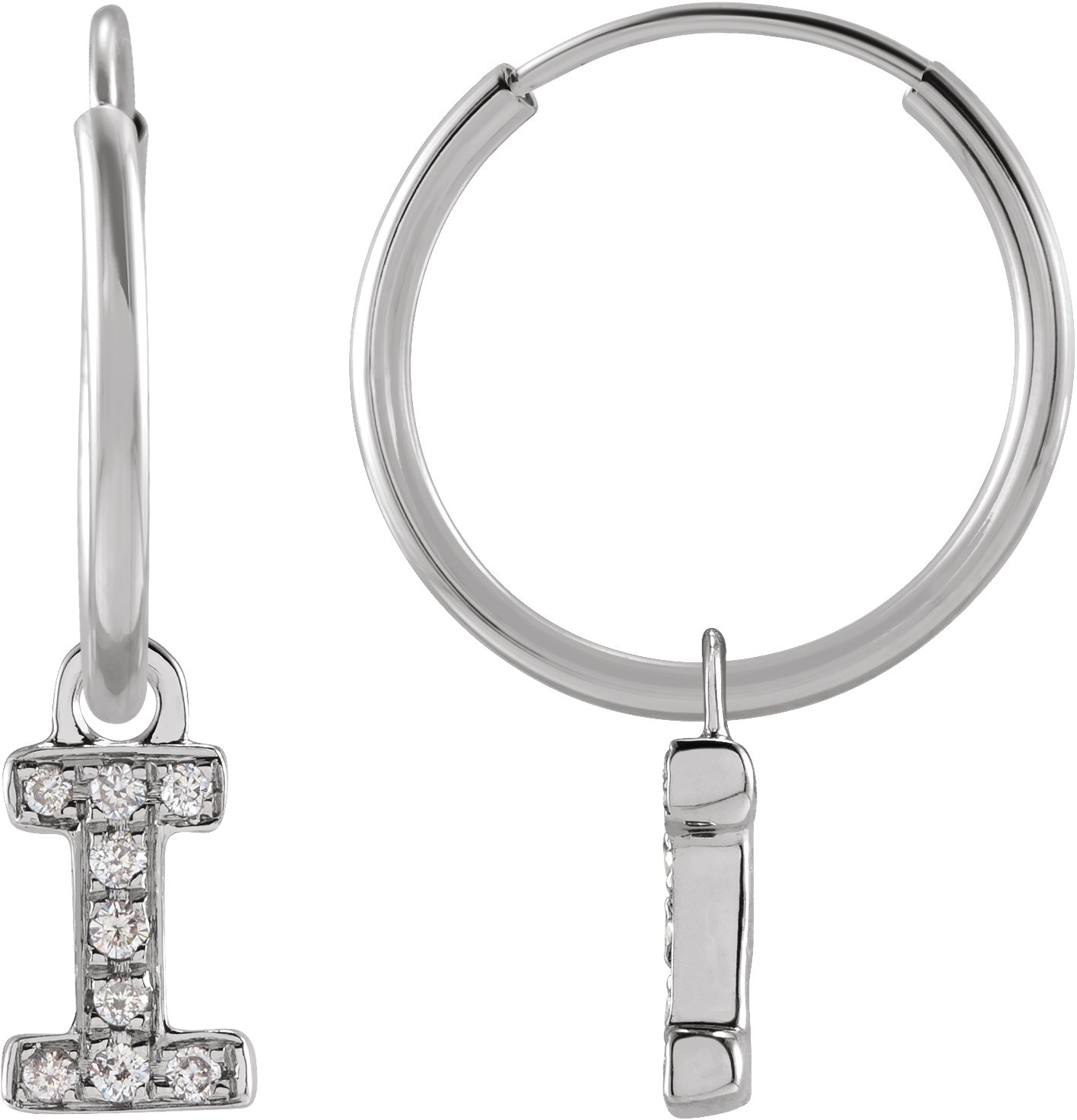 14K White .03 CTW Natural Diamond Single Initial I Hoop Earring Ref 18988701