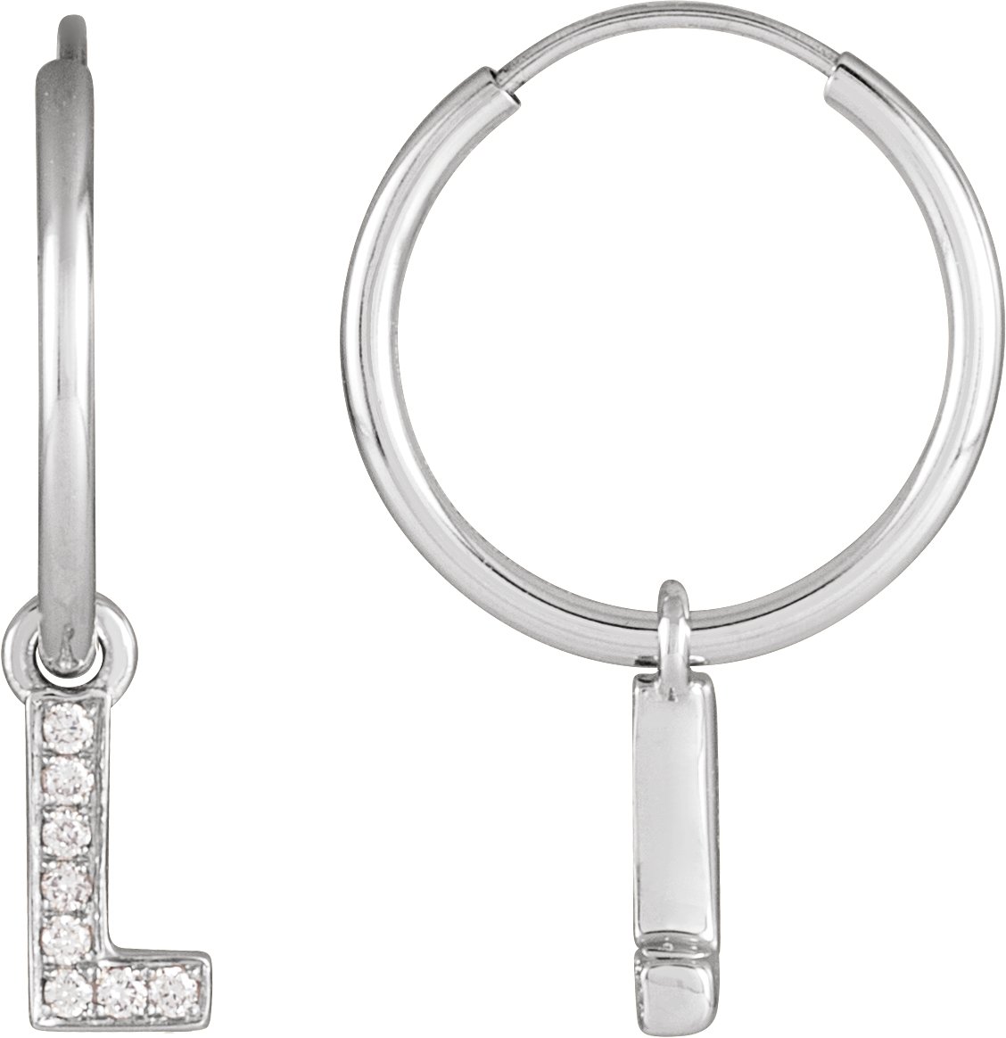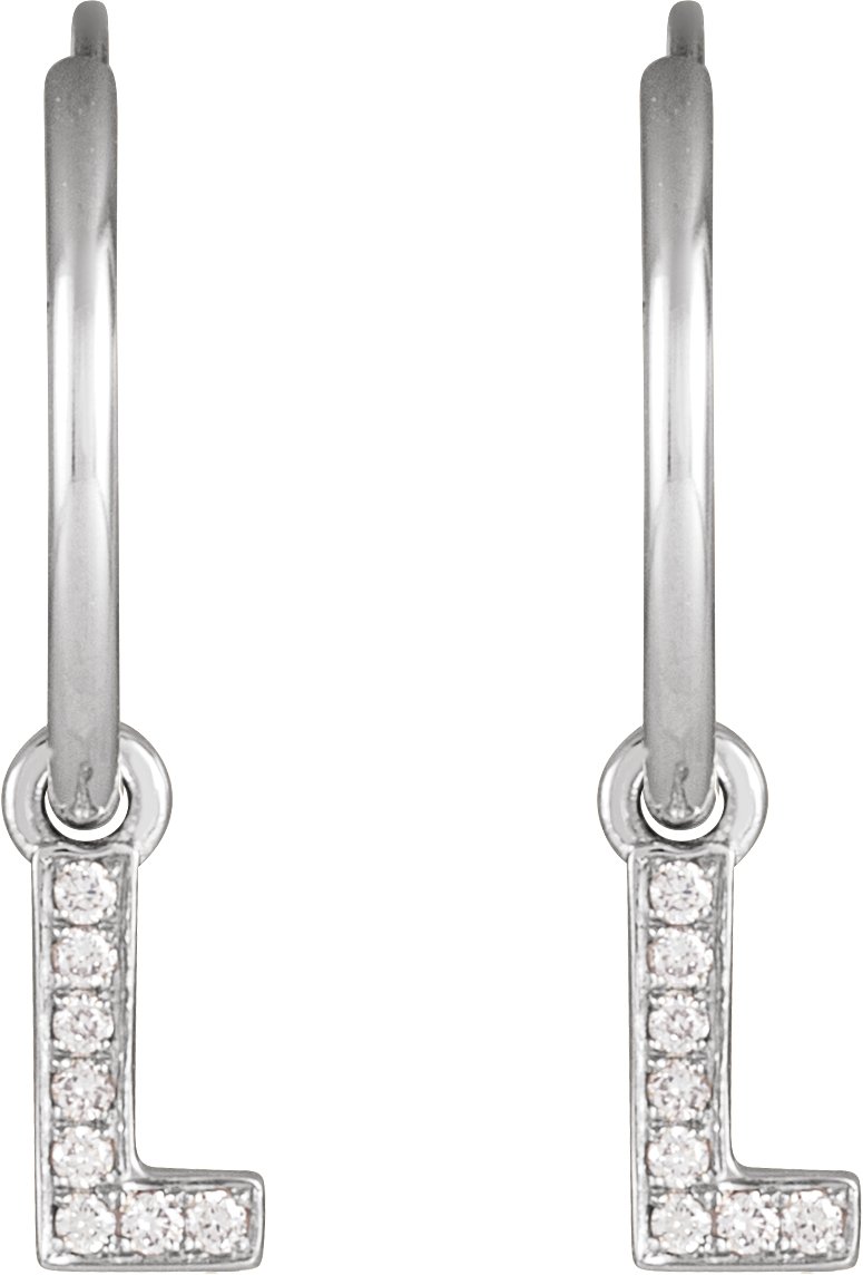 14K White .03 CTW Natural Diamond Single Initial L Hoop Earring Ref 18988762