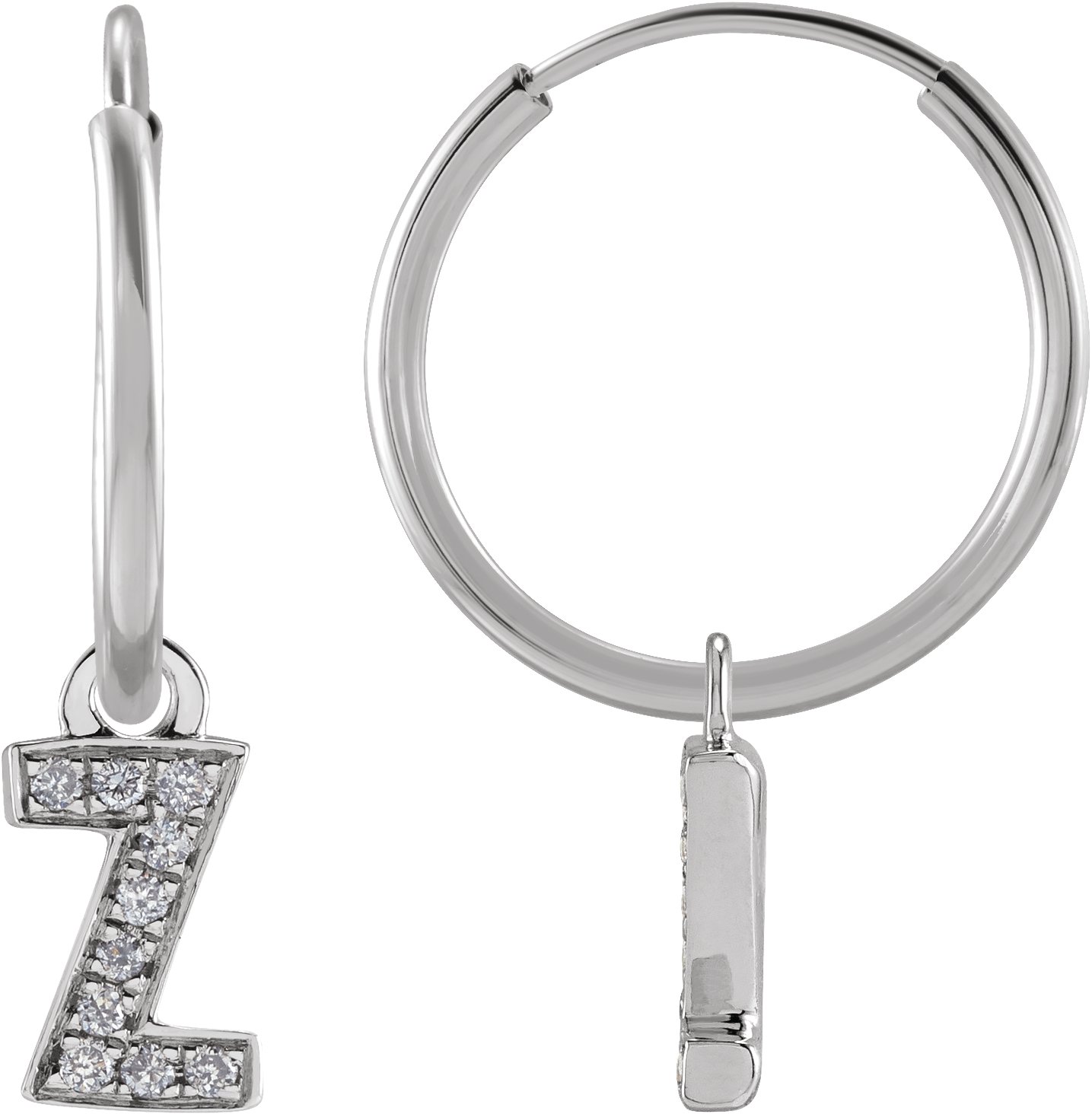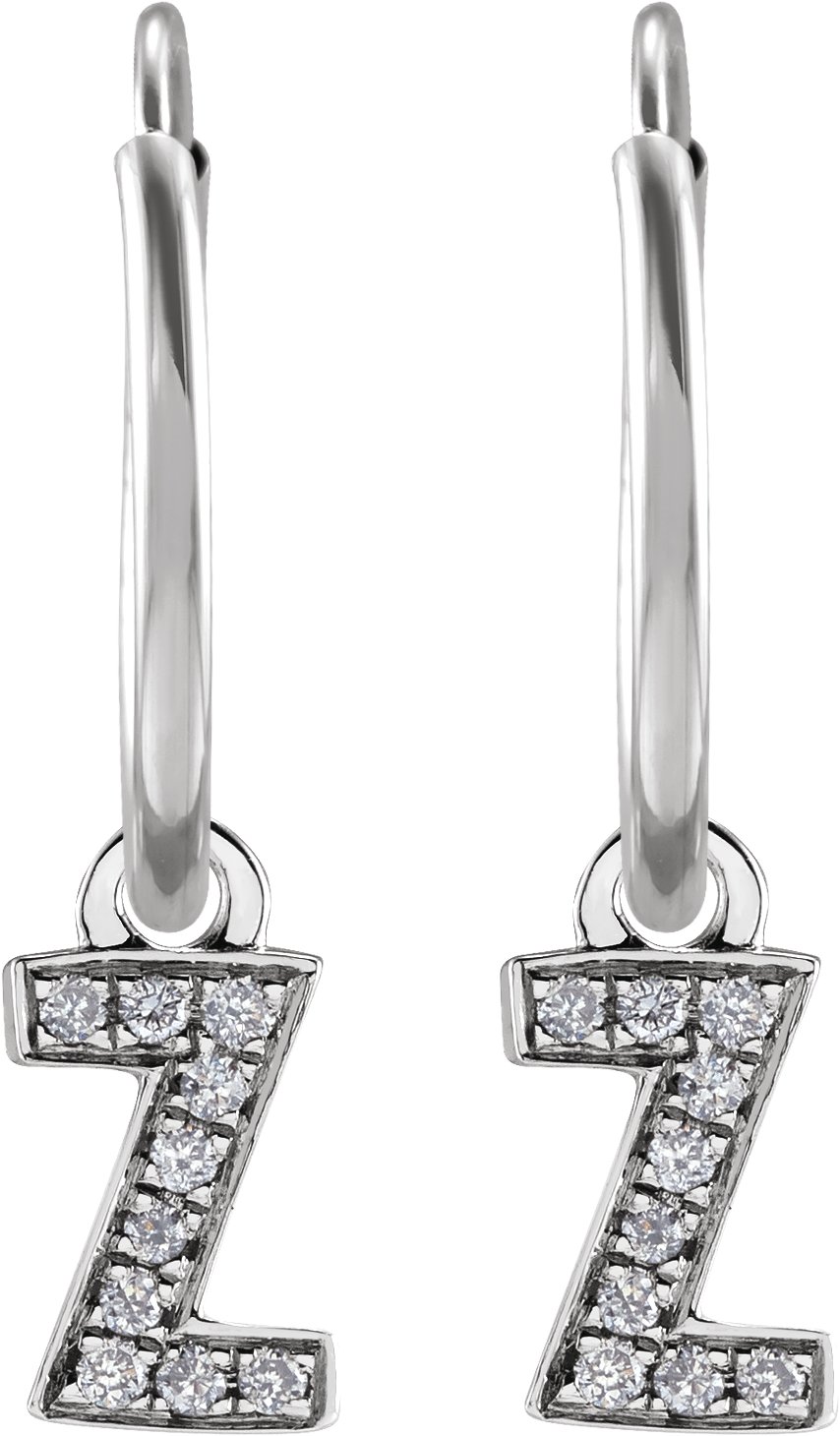 14K White .03 CTW Natural Diamond Single Initial Z Hoop Earring Ref 18988687