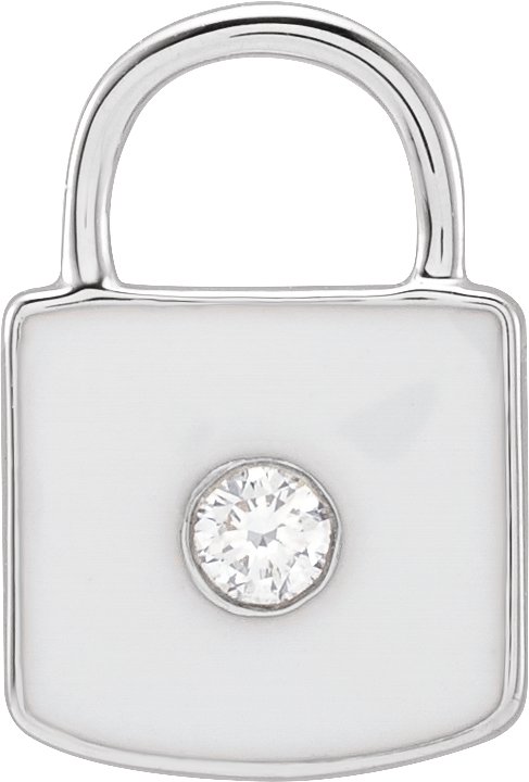 14K White .035 CT Natural Diamond and White Enamel Lock Charm or Pendant Ref 18628492