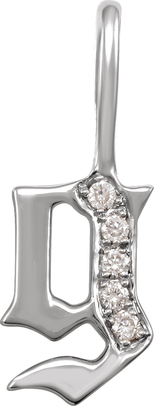 Description: 0.04 CTW Natural Diamond Gothic Initial Charm Pendant