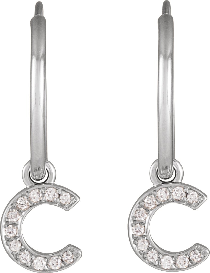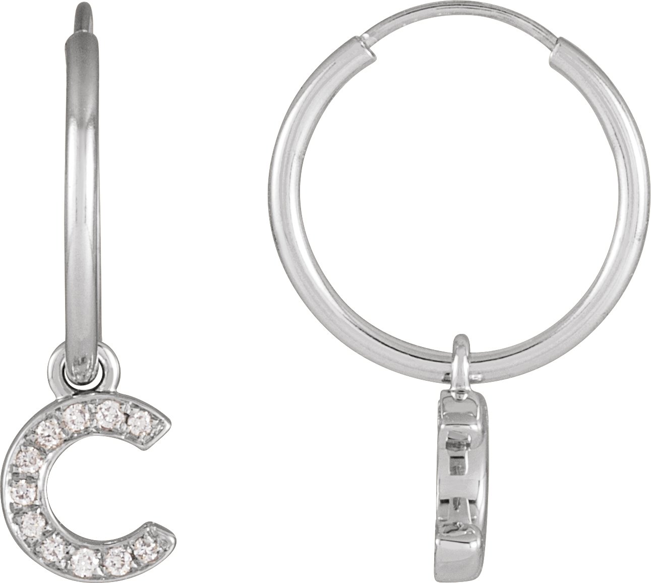 14K White .04 CTW Natural Diamond Single Initial C Hoop Earring Ref 18988705