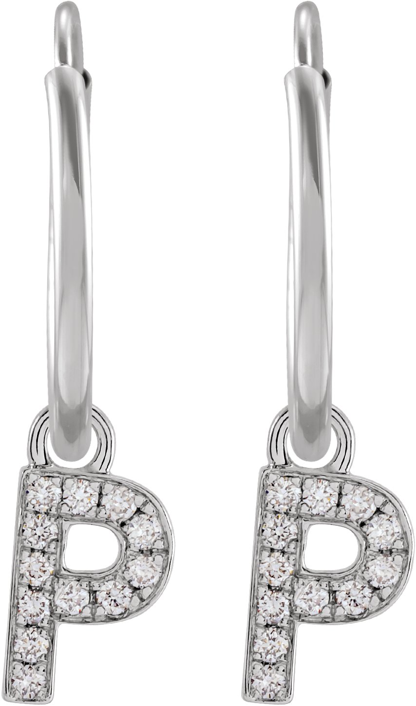 14K White .04 CTW Natural Diamond Single Initial P Hoop Earring Ref 18988723
