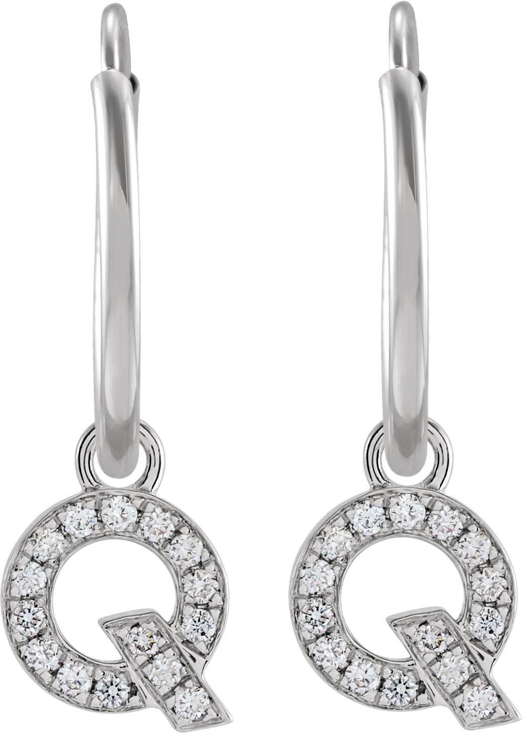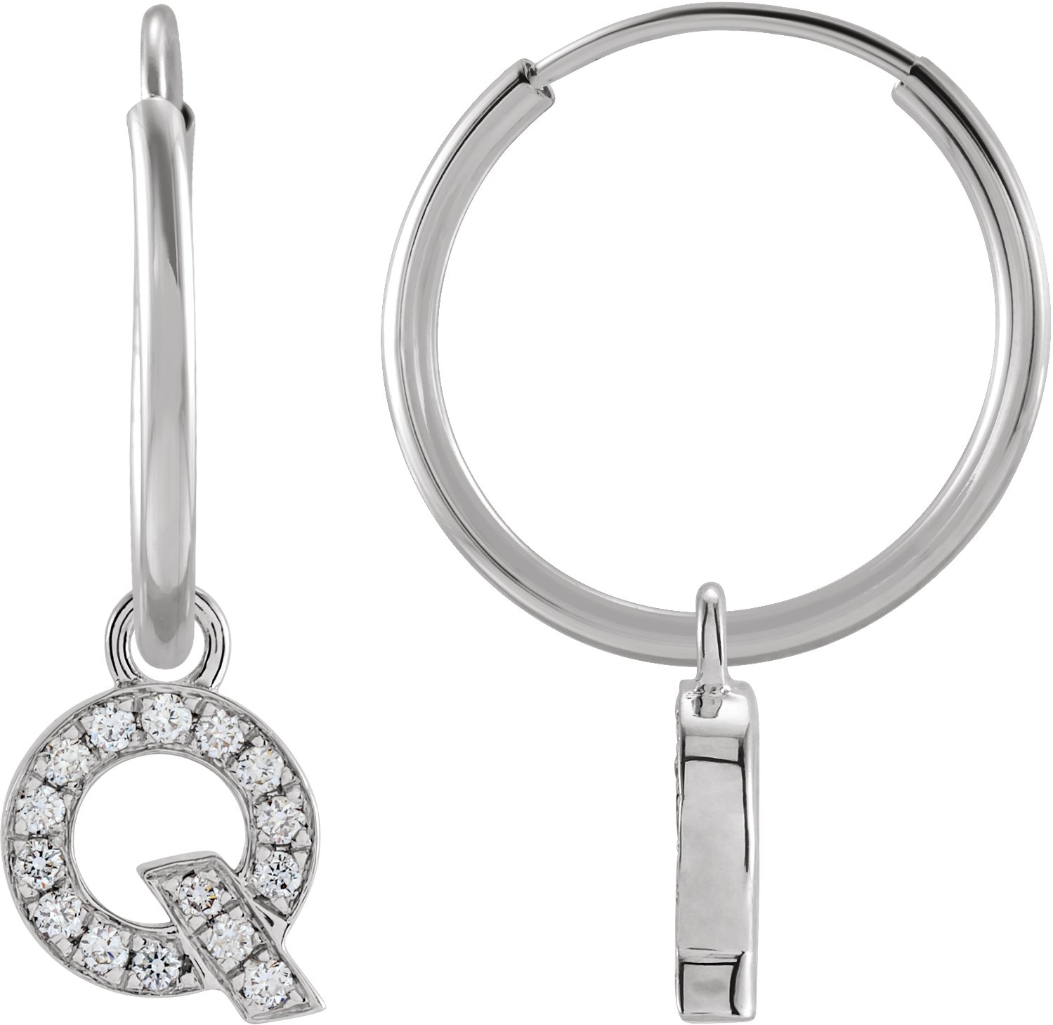 14K White .05 CTW Natural Diamond Single Initial Q Hoop Earring Ref 18988689