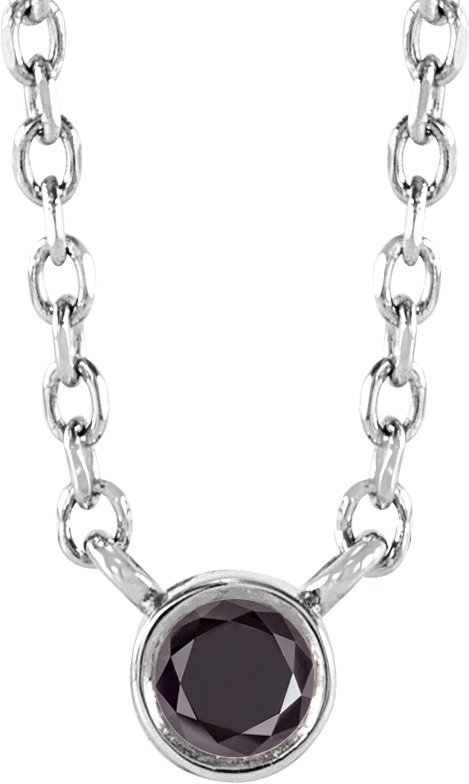 Description: .06 Ct Natural Black Diamond Bezel-Set Solitaire Necklace