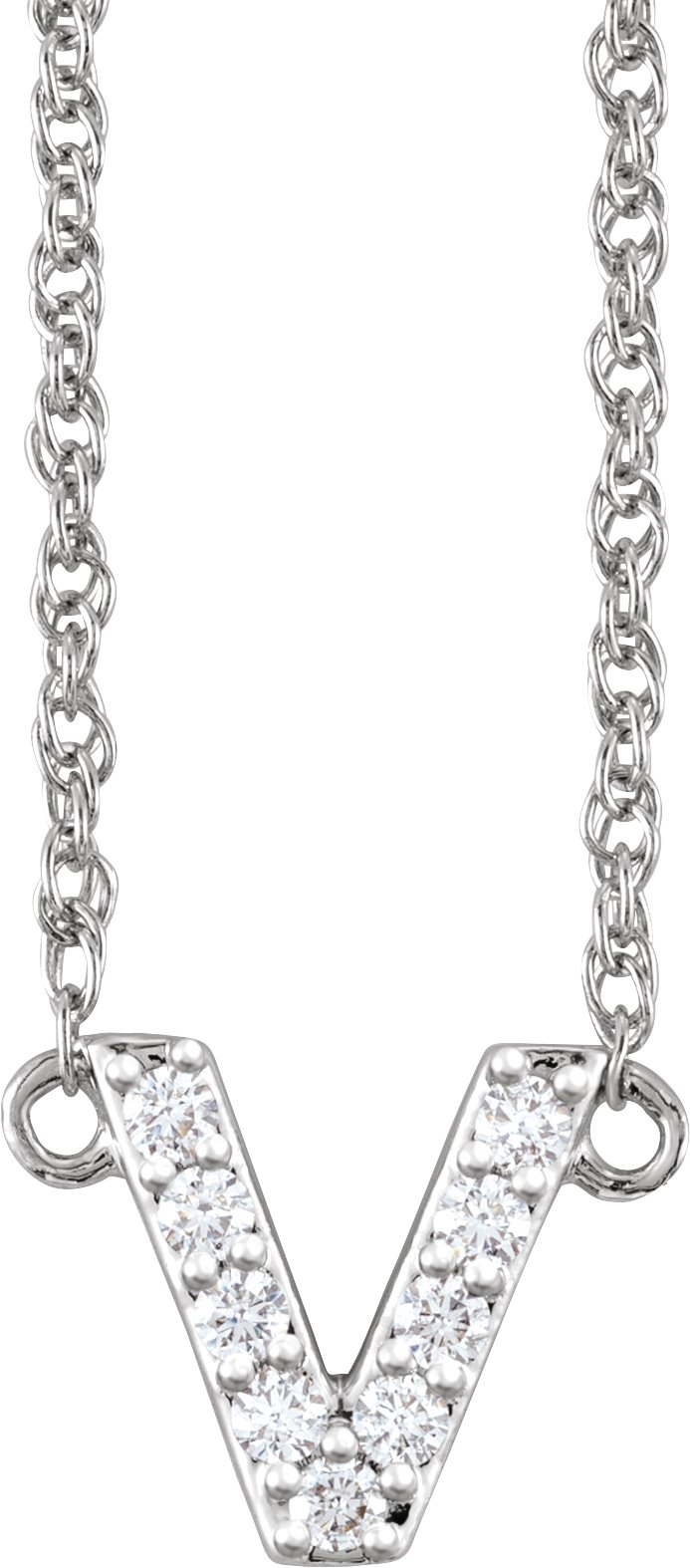 14K White 1/10 CTW Natural Diamond Lowercase Initial V 16" Necklace