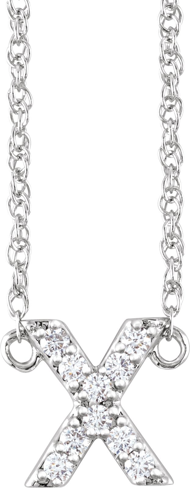 14K White 1/10 CTW Natural Diamond Lowercase Initial X 16" Necklace