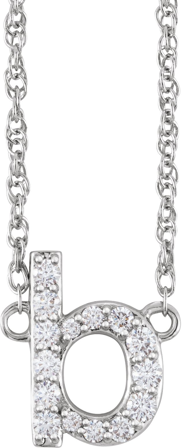 14K White 1/8 CTW Natural Diamond Lowercase Initial B 16" Necklace