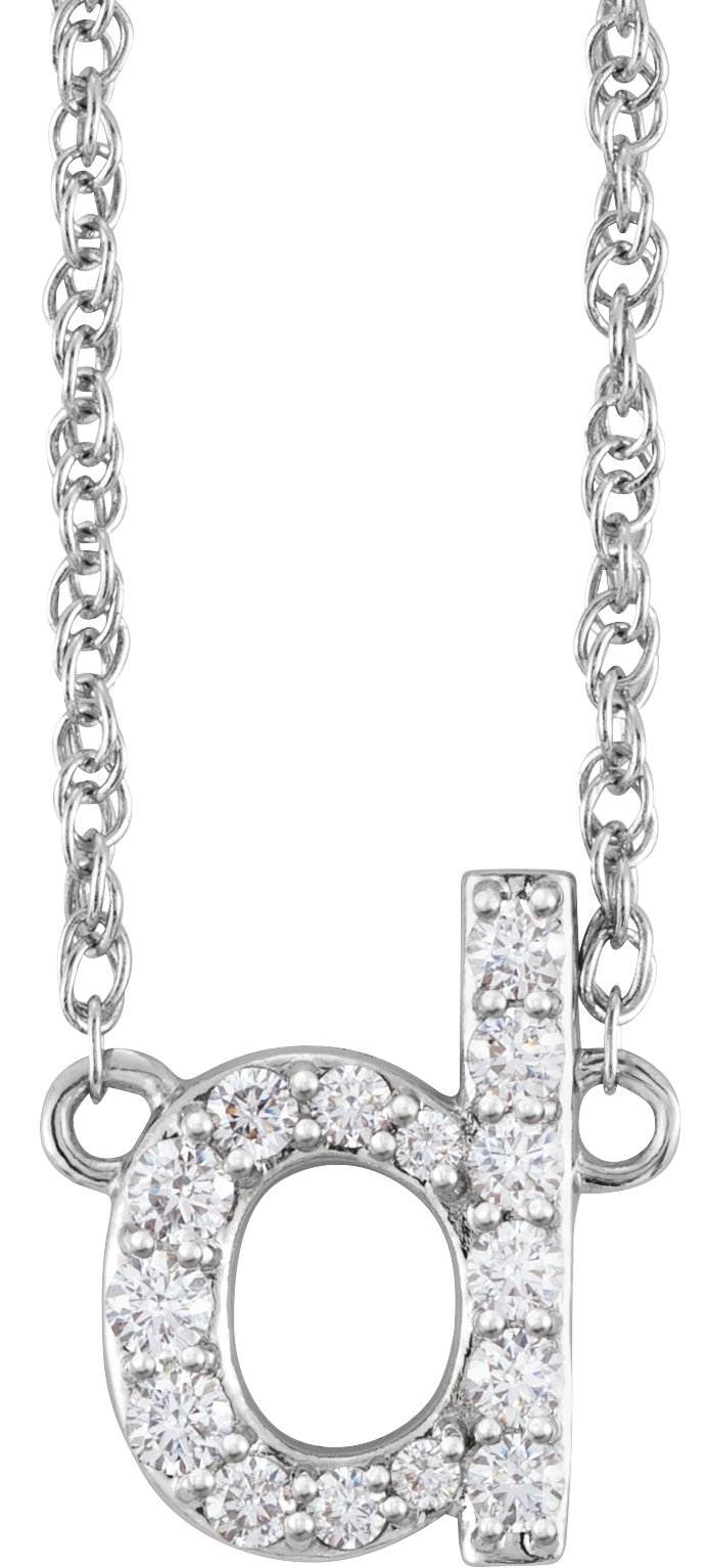 14K White 1/8 CTW Natural Diamond Lowercase Initial D 16" Necklace