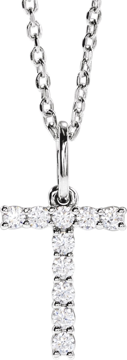 14K White 1/6 CTW Lab-Grown Diamond Initial T 16-18" Necklace