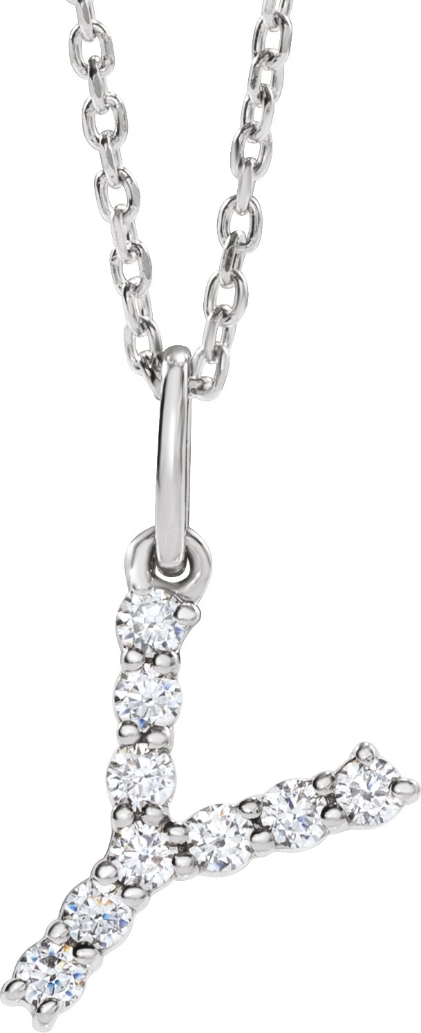 14K White 1/6 CTW Lab-Grown Diamond Initial Y 16-18" Necklace