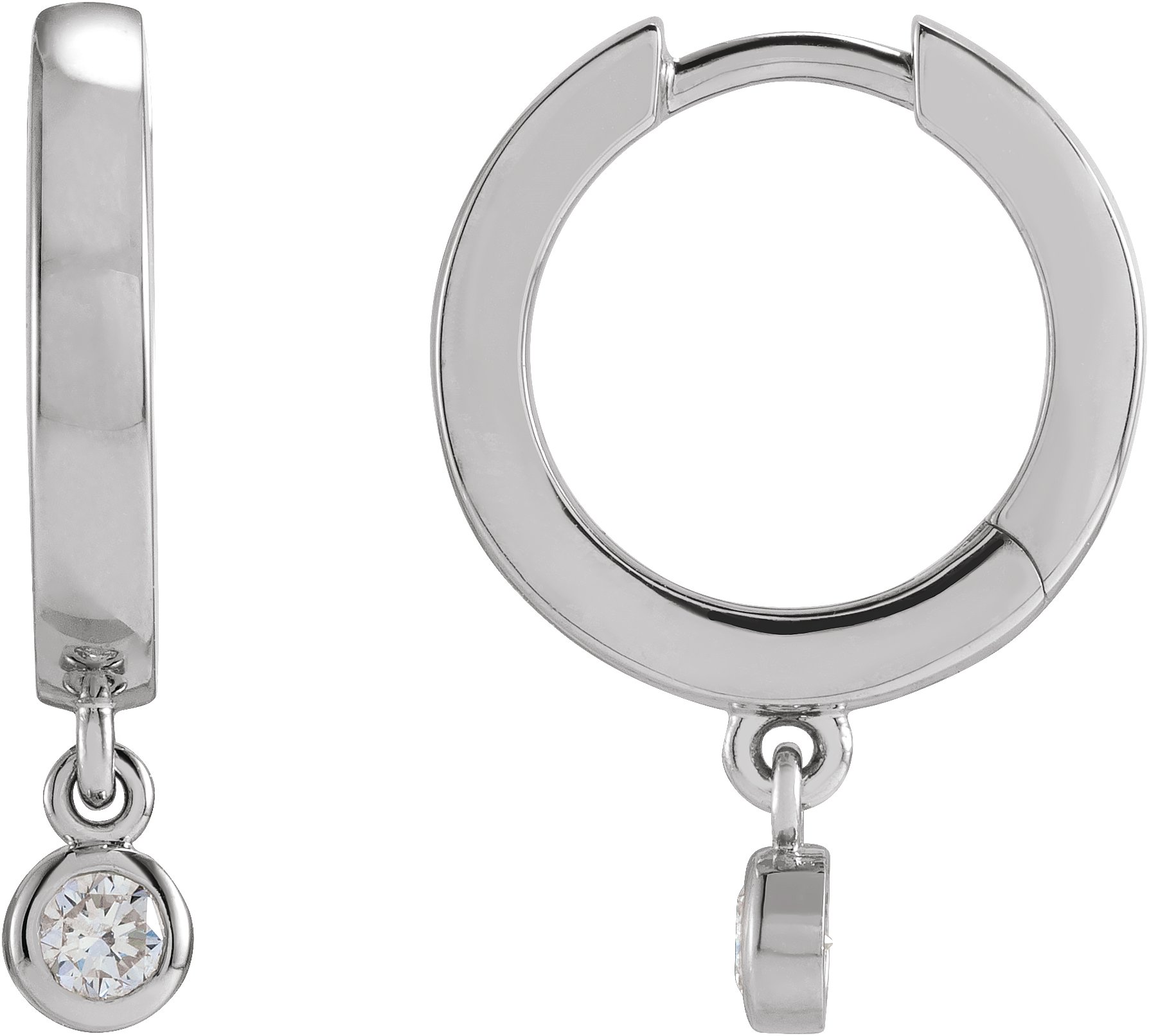 Description: 1/5 CTW Diamond Bezel Dangle Hinged Hoop Earrings