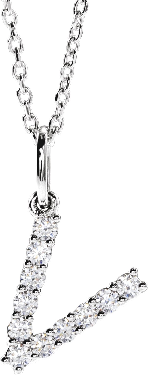 14K White 1/5 CTW Lab-Grown Diamond Initial V 16-18" Necklace