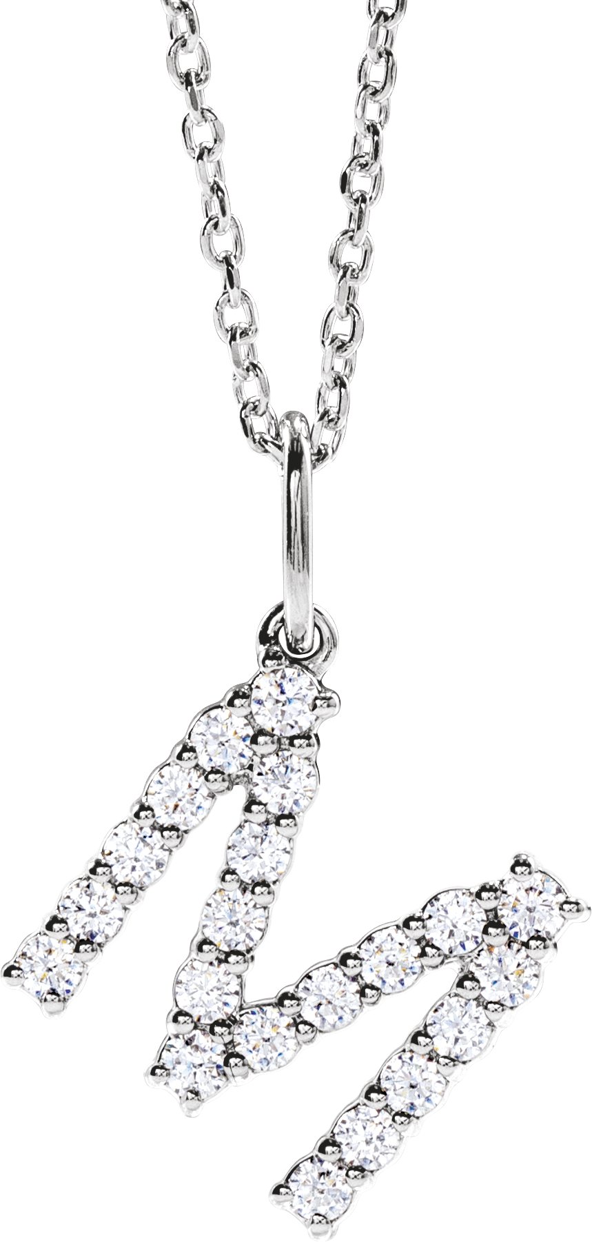 14K White 1/3 CTW Lab-Grown Diamond Initial M 16-18" Necklace