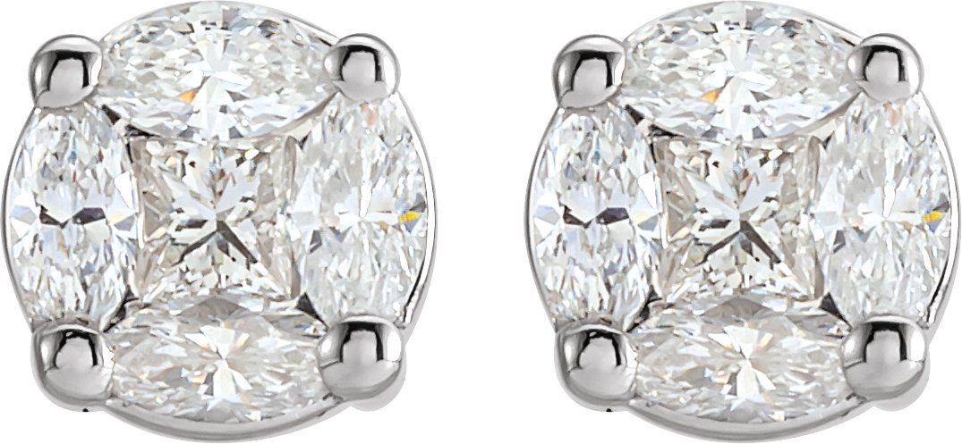 14K White .75 CTW Diamond Cluster Earrings