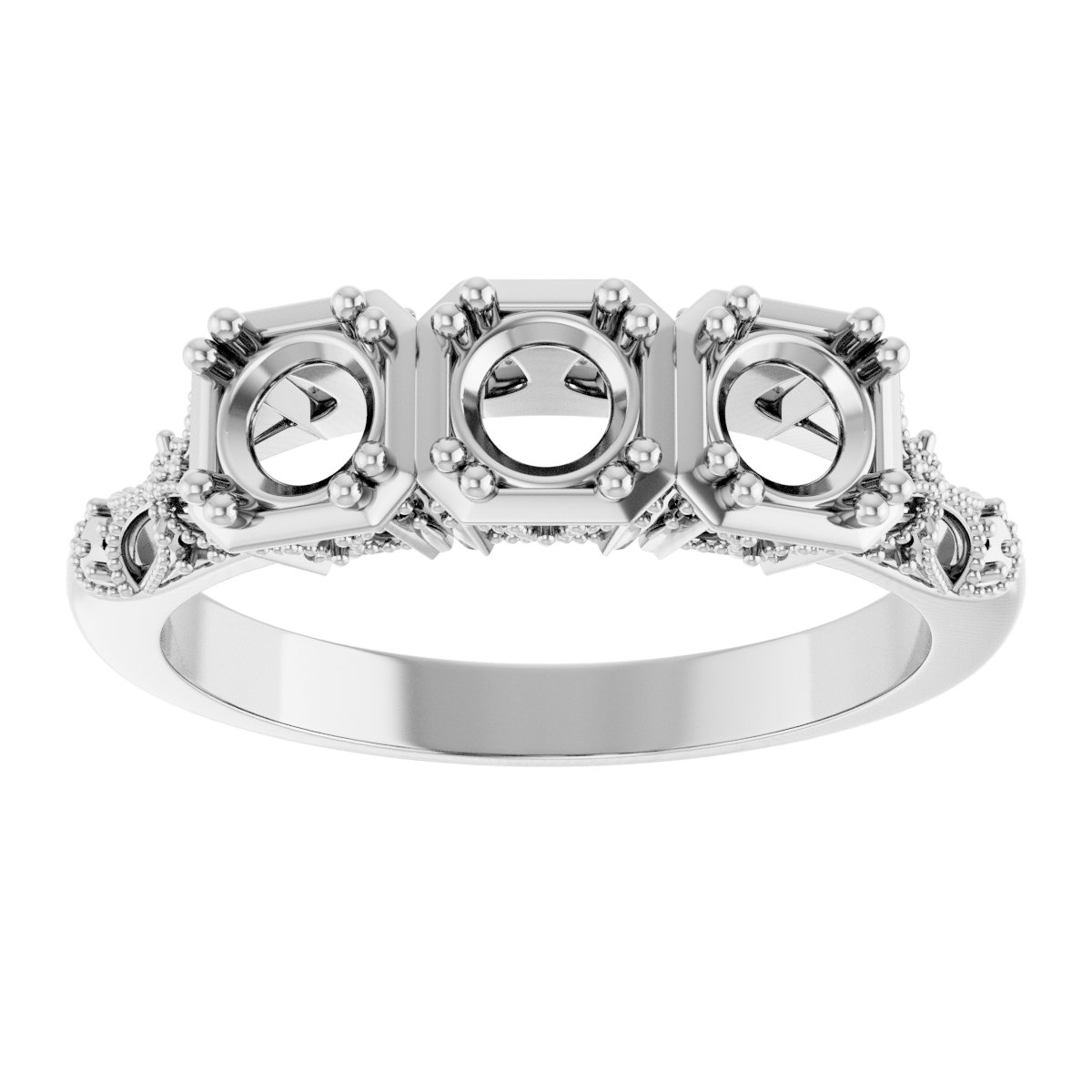 14K White 9/10 CTW Diamond Vintage-Inspired Three-Stone Anniversary Band