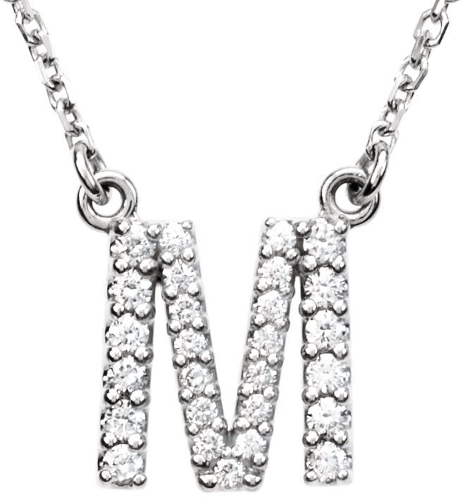 14K White 0.17 CTW Natural Diamond Initial M 16 inch Necklace Ref 2724932