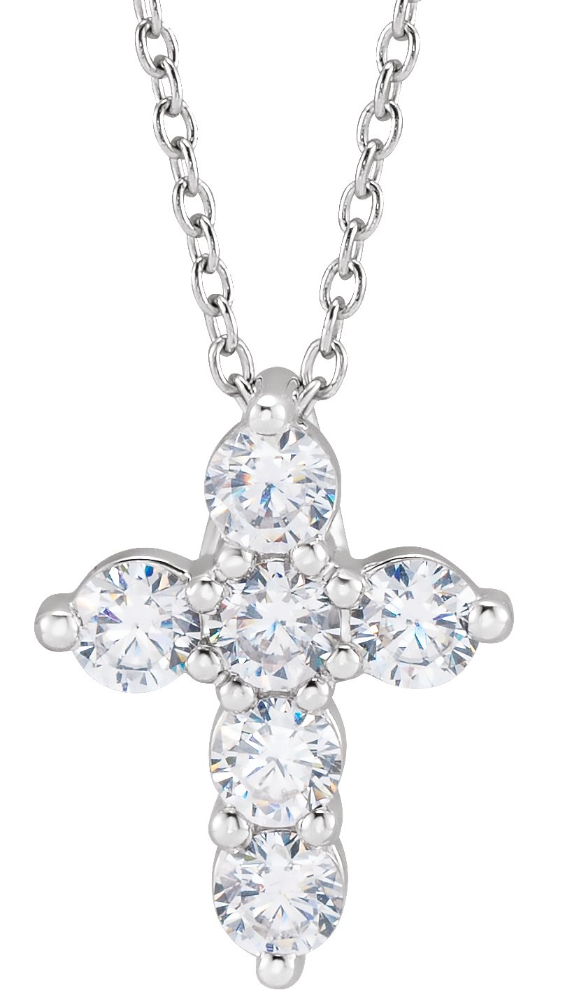 14K White 0.75 CTW Lab Grown Diamond Cross 18 inch Necklace Ref 18590802
