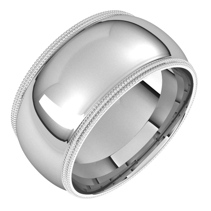 14K White 10 mm Double Milgrain Half Round Comfort Fit Band Size 13