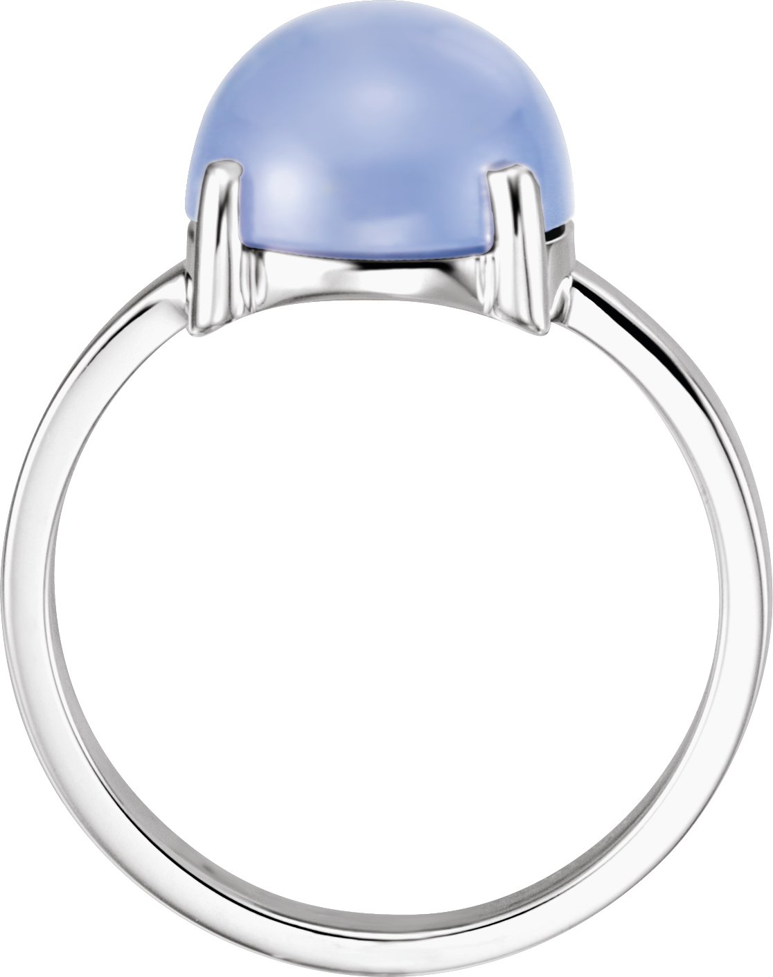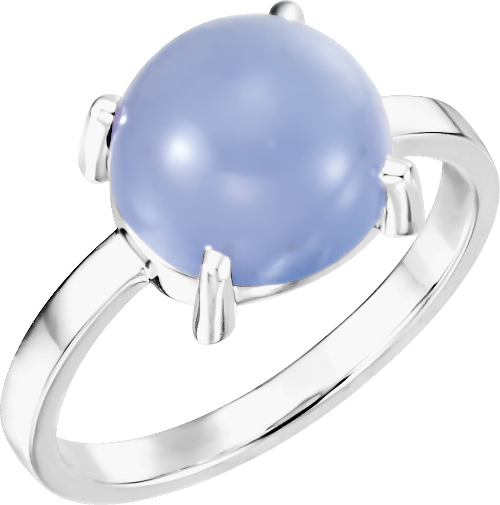 14K White 10 mm Round Blue Chalcedony Cabochon Ring