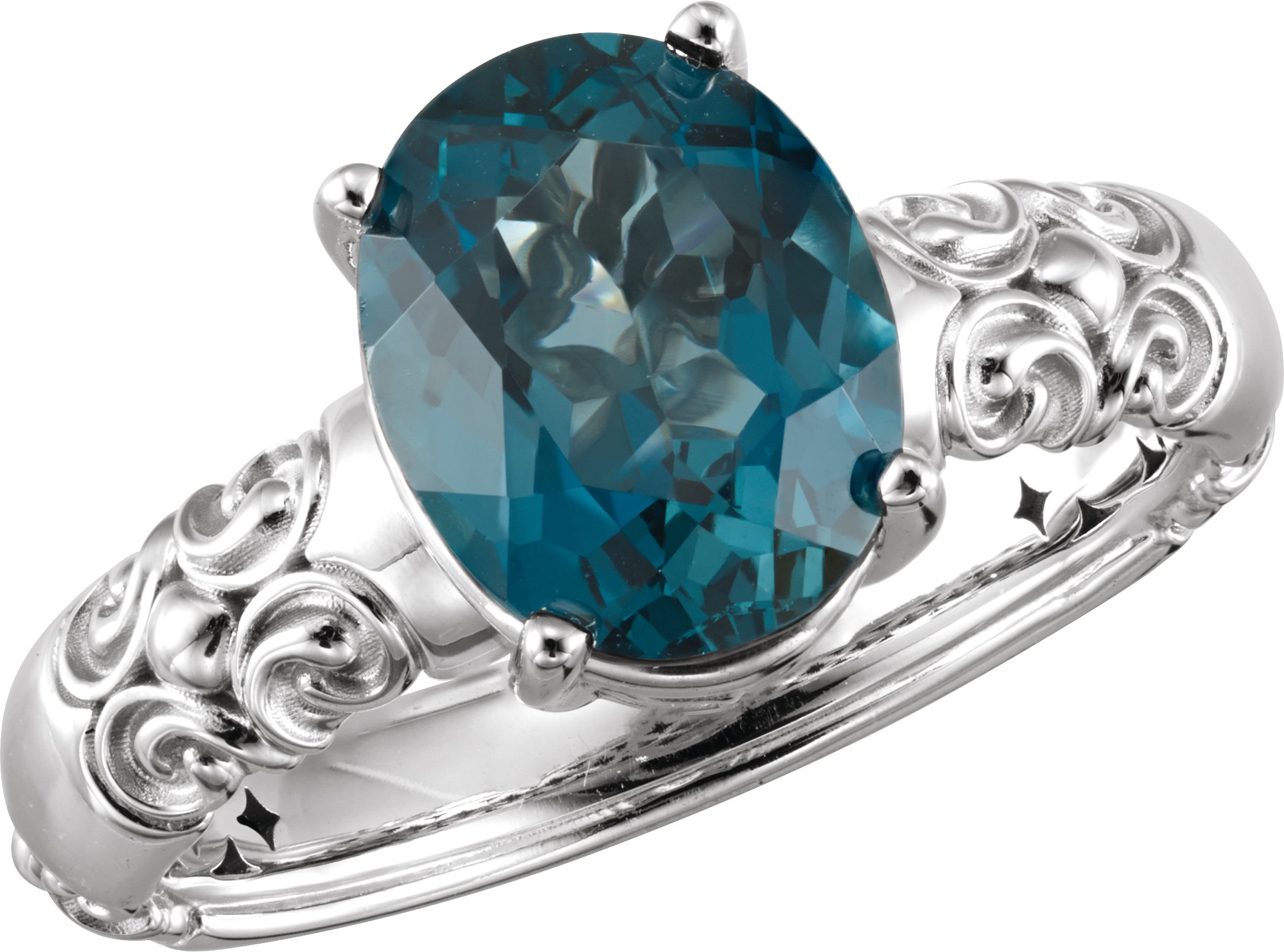 14K White 10x8 mm London Blue Topaz Ring