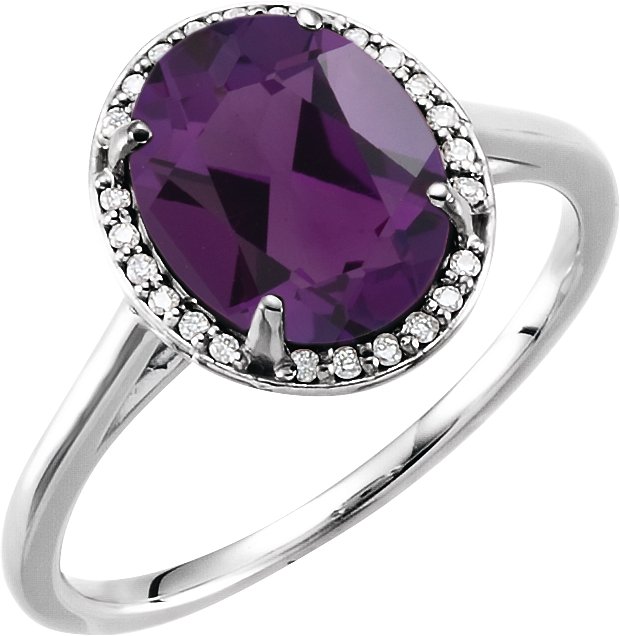 14K White 10x8 mm Oval Amethyst & .06 CTW Diamond Ring