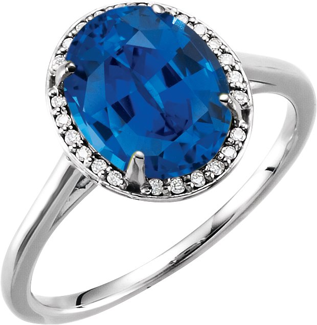 14K White 10x8 mm Oval Chatham Lab Created Blue Sapphire & .06 CTW Diamond Ring