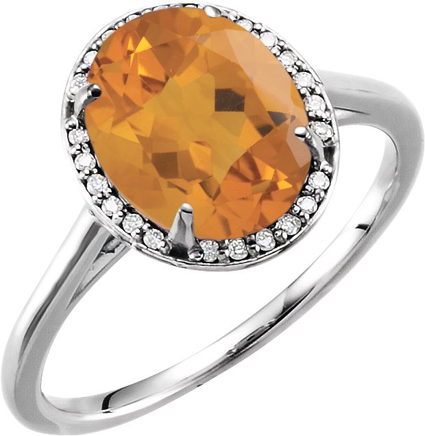 14K White 10x8 mm Oval Citrine & .06 CTW Diamond Ring