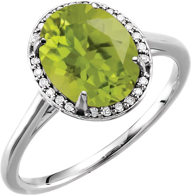 14K White 10x8 mm Oval Peridot & .06 CTW Diamond Ring
