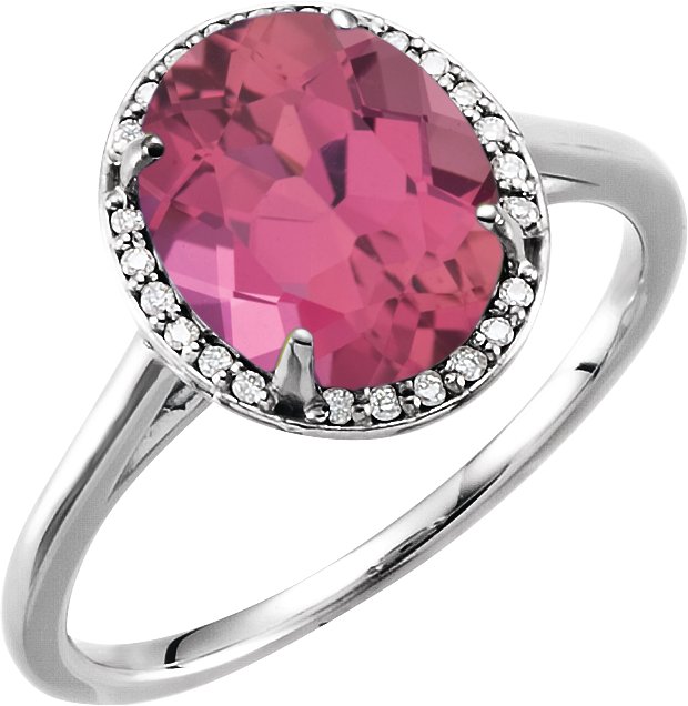 14K White 10x8 mm Oval Pink Tourmaline & .06 CTW Diamond Ring