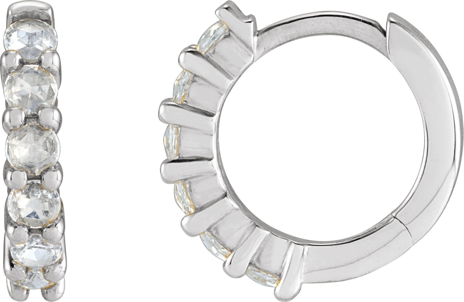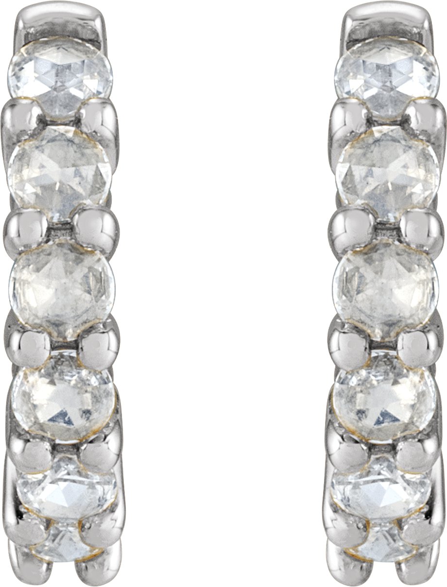 14K White 12.2 mm 0.20 CTW Rose Cut Natural Diamond Huggie Hoop Earrings Ref 20030818
