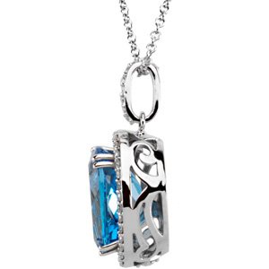 14K White 14x10 mm Swiss Blue Topaz and .375 CTW Diamond Halo Style 18 inch Necklace