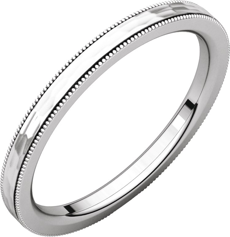 Description: Flat Comfort-Fit Milgrain Satin And Hammer Finish