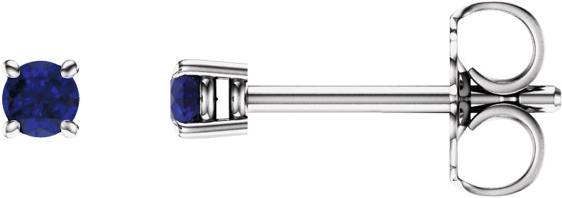 14K White 2.5 mm Round Chatham Created Blue Sapphire Earrings