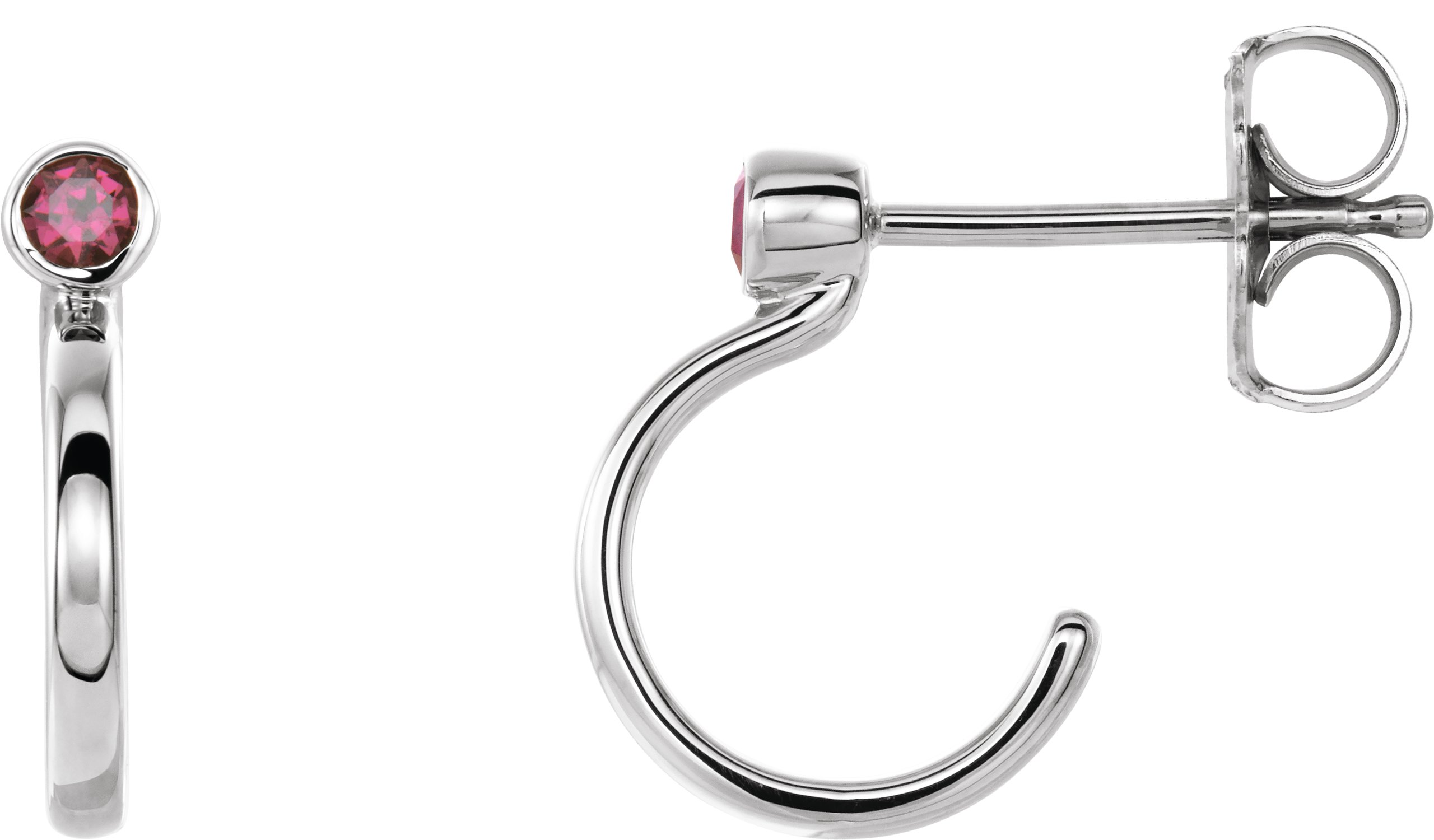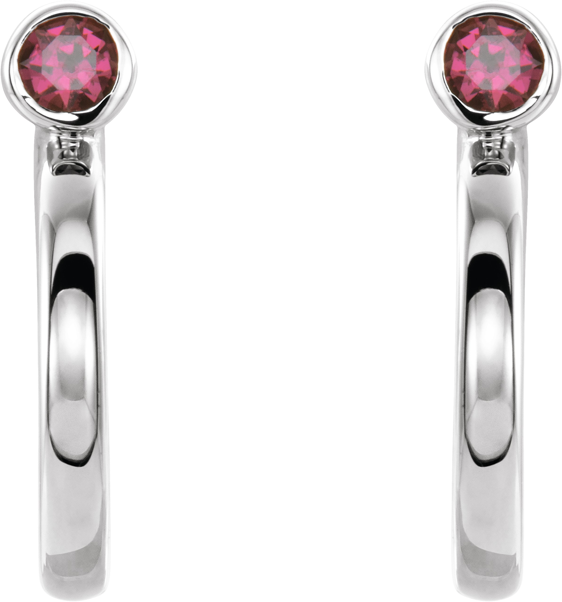 14K White 2.5 mm Round Ruby Bezel Set Hoop Earrings