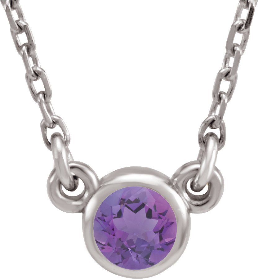 14K White 3 mm Round Amethyst Bezel Set Solitaire 16" Necklace Ref. 14244496