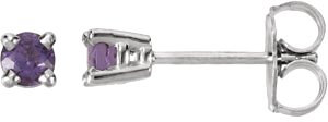 14K White 3 mm Round Amethyst Friction Post Stud Earrings