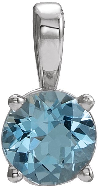 14K White 3 mm Round Blue Zircon Birthstone Pendant