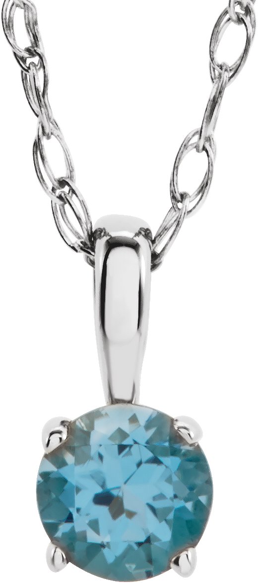 14K White 3 mm Round December Imitation Blue Zircon Youth Birthstone 14 inch Necklace