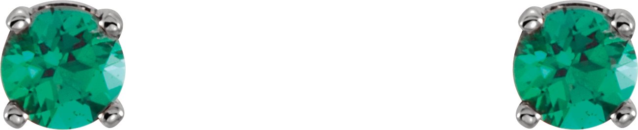 14K White 3 mm Round Imitation Emerald Youth Birthstone Earrings