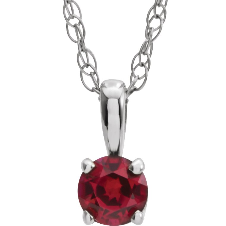 14K White 3 mm Round July Genuine Ruby Youth Birthstone 14 inch Necklace