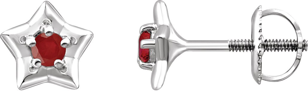 14K White 3 mm Round July Youth Star Birthstone Earrings