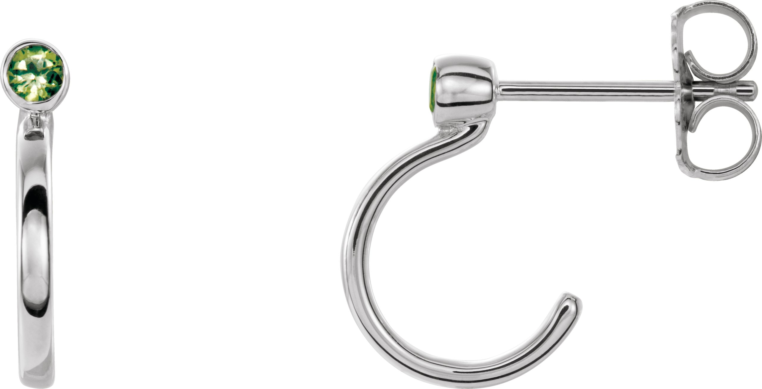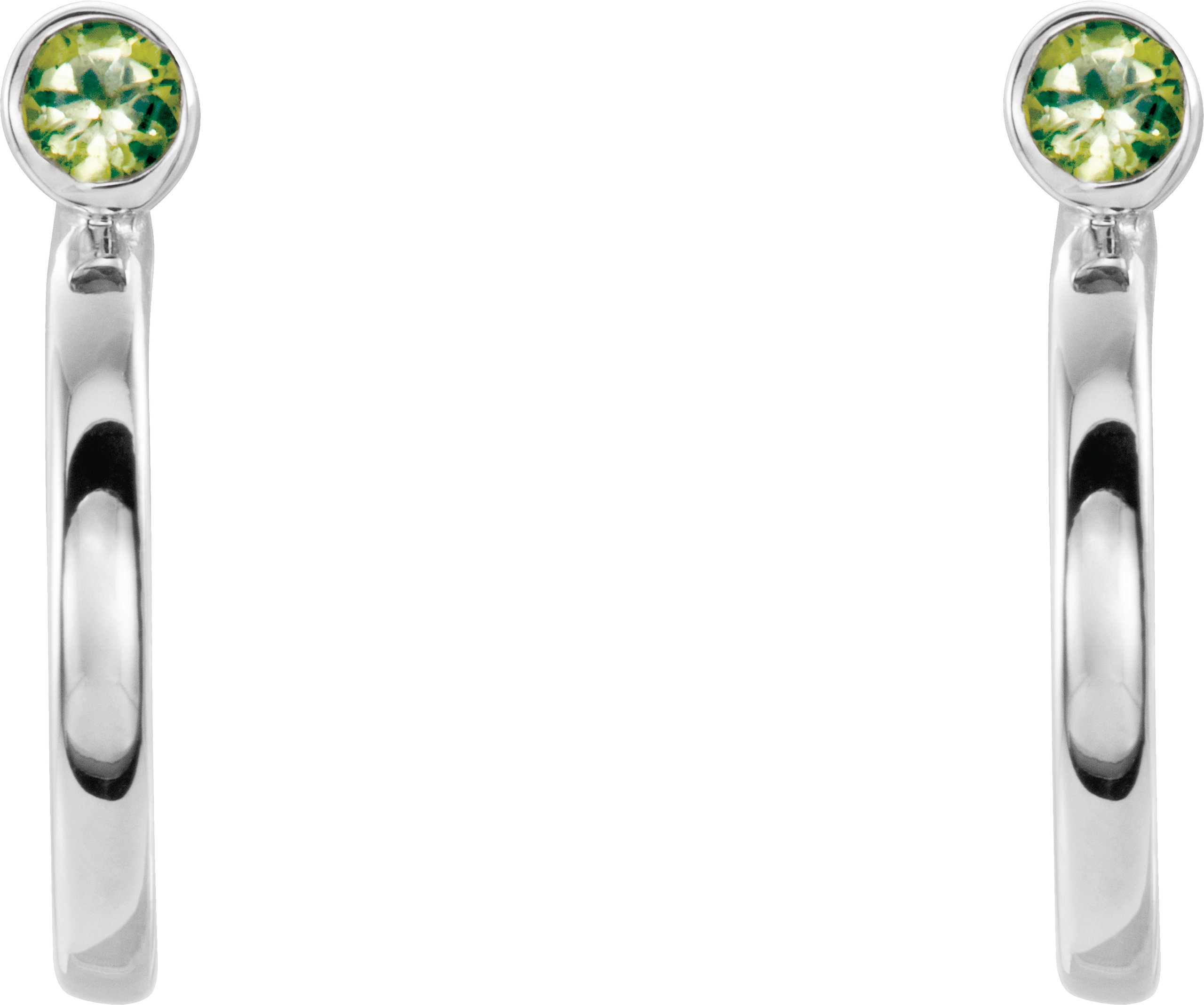 14K White 3 mm Round Peridot Bezel Set Hoop Earrings