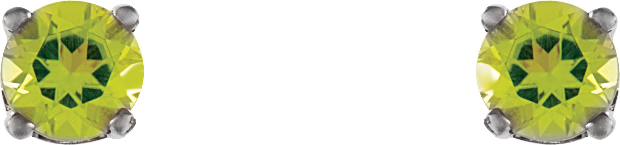 14K White 3 mm Round Peridot Youth Birthstone Earrings