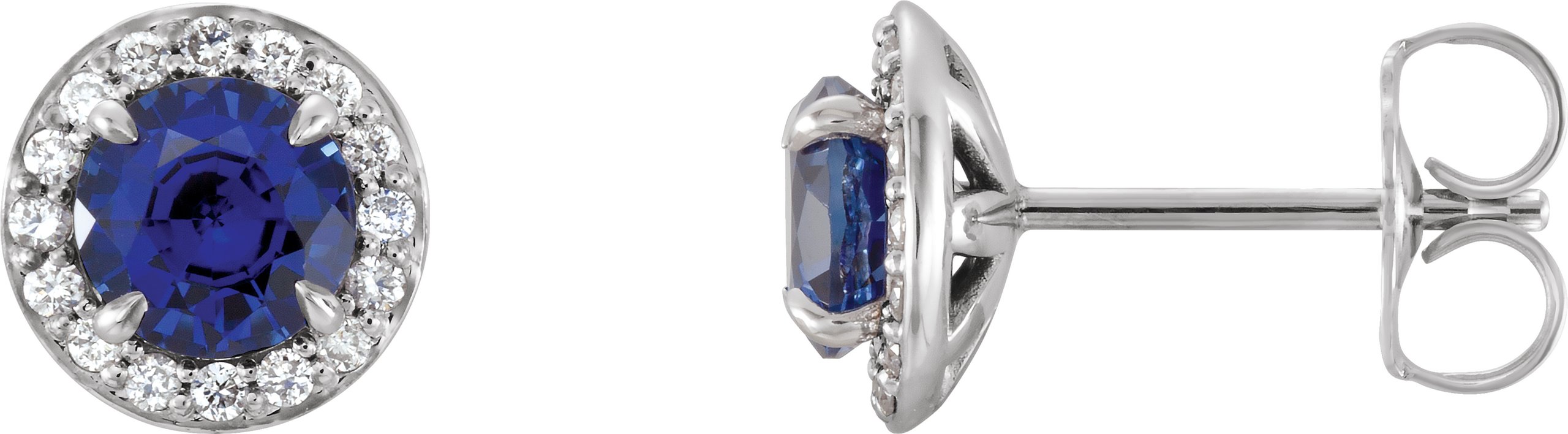 14K White 3.5 mm Round Chatham Lab Created Blue Sapphire & 1/8 CTW Diamond Earrings