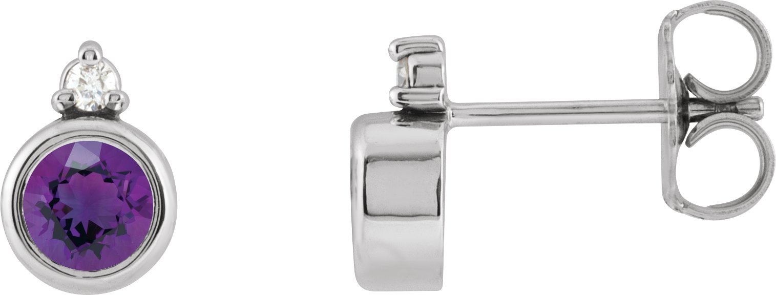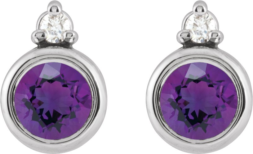 14K White 4 mm Natural Amethyst & .03 CTW Natural Diamond Earrings