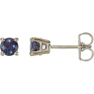 14K White 4 mm Round Chatham Created Alexandrite Friction Post Stud Earrings