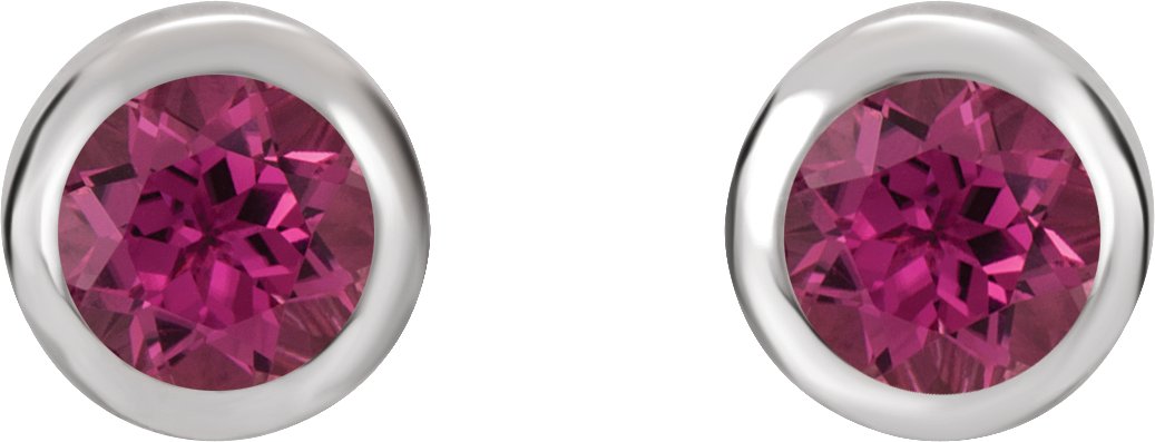 14K White 4 mm Round Genuine Pink Tourmaline Birthstone Earrings