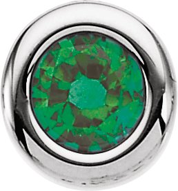 14K White 4 mm Round Imitation Emerald Birthstone Slide Pendant
